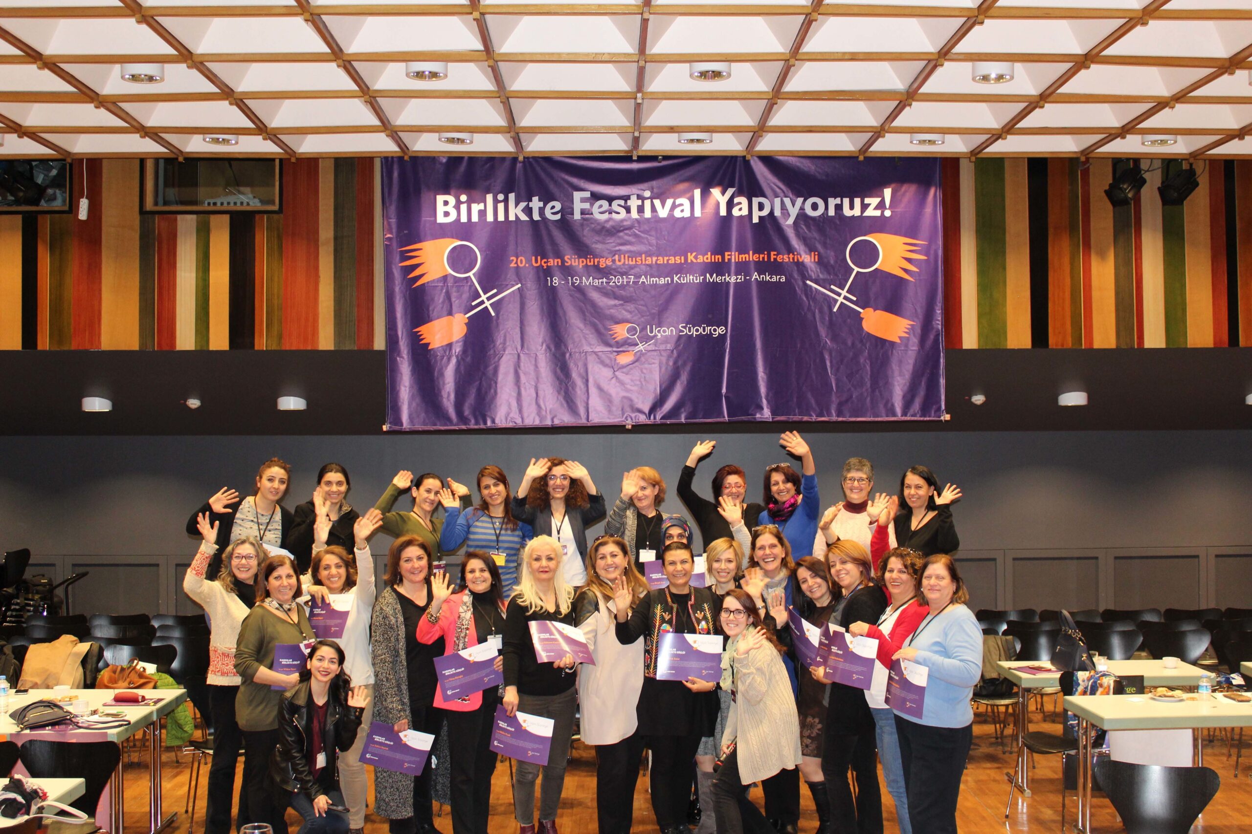 Uçan Süpürge festival ekibi yapacağı bu geniş organizasyonun ilk buluşmasını 18-19 Mart tarihleri arasında Alman Kültür Merkezi’nde gerçekleştirdiği ”Birlikte Festival Yapıyoruz” temalı etkinlikle başladı. İki gün boyunca süren organizasyonun ilk gününde Toplumsal Cinsiyet Odaklı Sinema ve Festival Söyleşileri, Toplumsal Cinsiyet ve Mekan, Görsel Kültür ve Toplumsal Cinsiyet başlıklı oturumlar gerçekleştirildi. Sinema salonunda da beraber olmanın keyfini İstanbul Kırmızısı film gösteriminde birlikte yaşayan kadınlar, etkinliğin ikinci gününde de bir film okumasının nasıl yapılması gerektiği, etkinlik planlamalarında dikkat edilmesi gereken hususlar, Uçan Süpürge Uluslararası Kadın Filmleri festivalinin kuruluş hikayesi ve kuruluş amacıyla ilgili bilgilendirildi. Günün sonunda bir festival nasıl planlanır atölye çalışmasının ardından illerine dönen kadın kuruluşu temsilcileri 20-21 Mayıs’ta illerinde gerçekleştirecekleri festival etkinliklerinin hazırlıklarına başladılar.