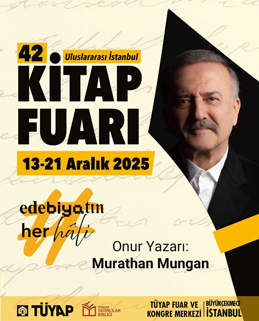 Uluslararası İstanbul Kitap Fuarı, 42. kez kapılarını açmaya hazırlanıyor. Tüyap Fuarcılık Grubu ve Türkiye Yayıncılar Birliği iş birliğiyle gerçekleşecek olan fuar, bu yıl 13-21 Aralık 2025 tarihleri arasında kitapseverlerle buluşacak. Etkinliğin merkezinde ise edebiyatımızın özgün ve çok yönlü kalemi Murathan Mungan bulunuyor.