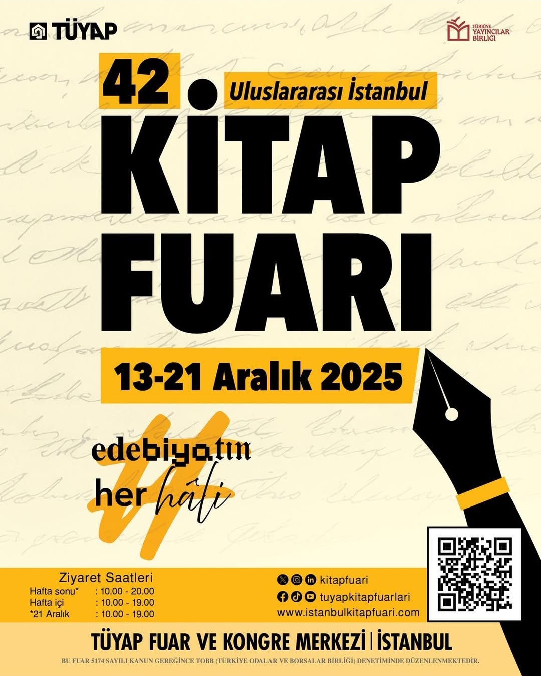 Uluslararası İstanbul Kitap Fuarı, 42. kez kapılarını açmaya hazırlanıyor. Tüyap Fuarcılık Grubu ve Türkiye Yayıncılar Birliği iş birliğiyle gerçekleşecek olan fuar, bu yıl 13-21 Aralık 2025 tarihleri arasında kitapseverlerle buluşacak. Etkinliğin merkezinde ise edebiyatımızın özgün ve çok yönlü kalemi Murathan Mungan bulunuyor.