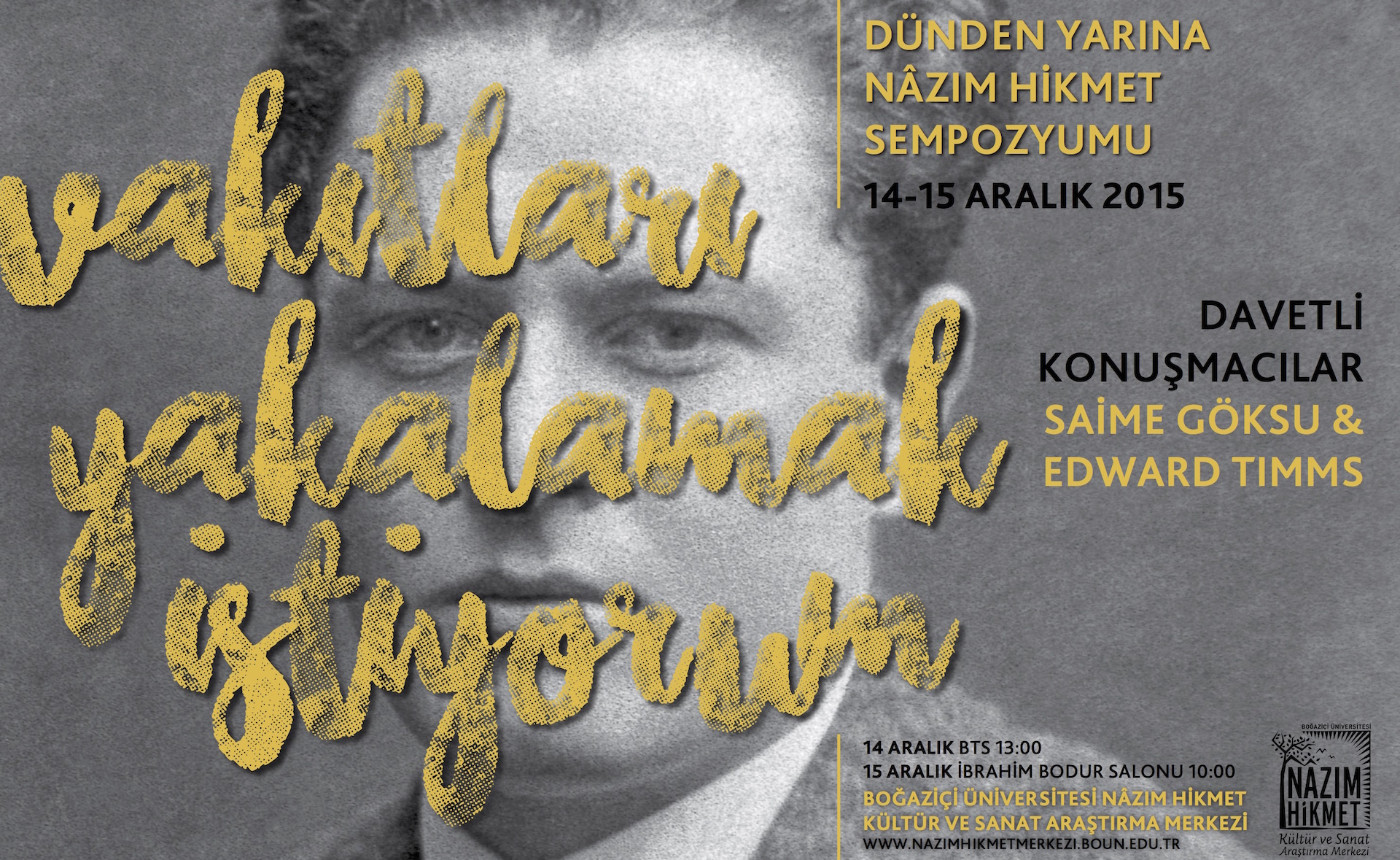 Boğaziçi Üniversitesi Nâzım Hikmet Kültür ve Sanat Araştırma Merkezi’nin düzenlediği “Vakıtları Yakalamak İstiyorum”: Dünden Yarına Nâzım Hikmet Sempozyumu 14-15 Aralık’ta yapılacak.