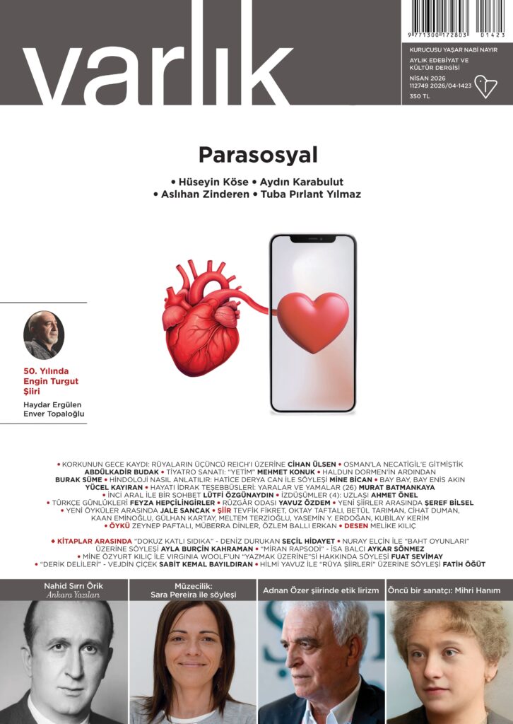 Varlık’ın Nisan 2026 sayısının dosya konusu, “Parasosyal”. Dosyamıza katkıda bulunan yazarlarımız ise Hüseyin Köse, Aydın Karabulut, Aslıhan Zinderen ve Tuba Pırlant Yılmaz.