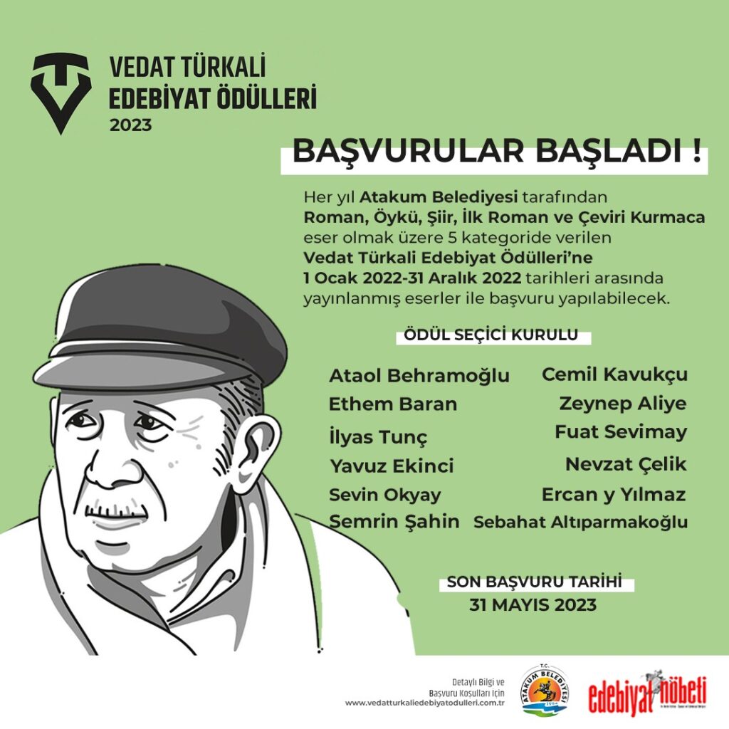 Atakum Belediyesi ve ve Edebiyat Nöbeti dergisinin düzenlediği 2023 Vedat Türkali Edebiyat Ödülleri için son başvuru tarihi 31 Mayıs olarak açıklandı.