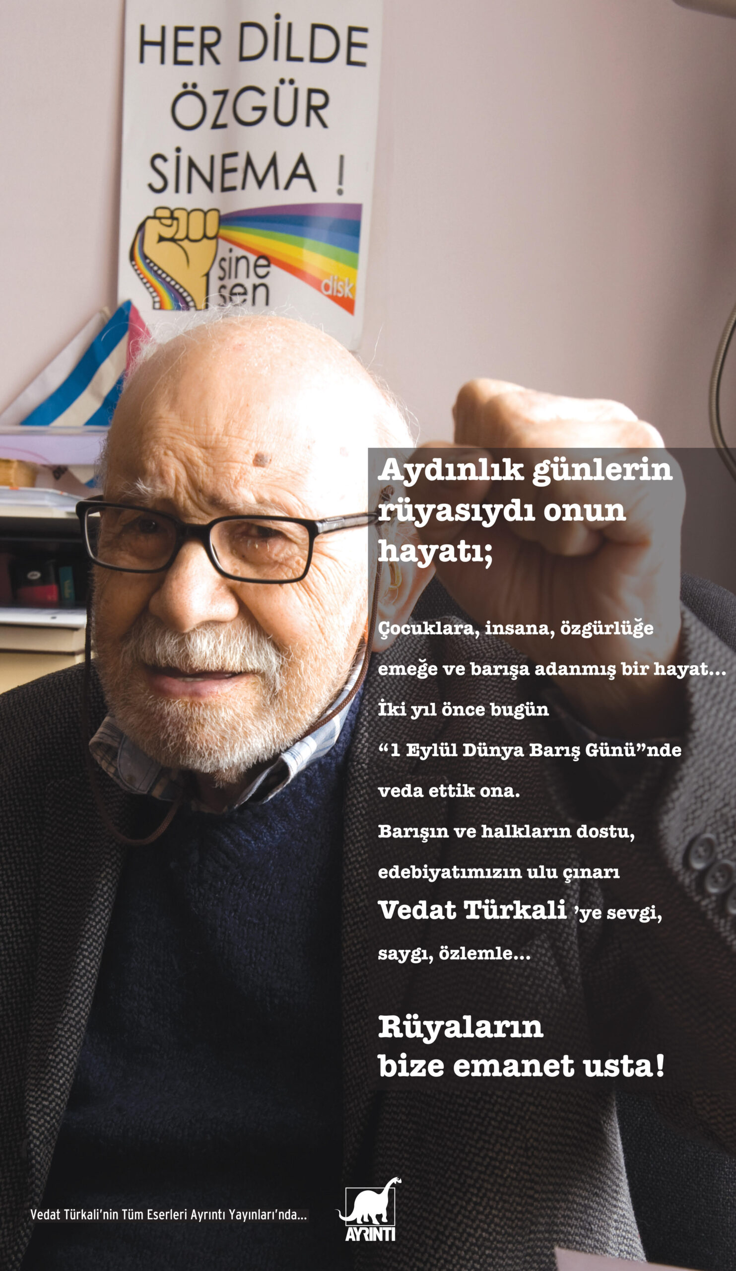 Vedat Türkali iki yıl önce bugün aramızdan ayrıldı Ağustos 1, 2018 yazar admin Bu bir reklamdır. edebiyathaber.net (1 Eylül 2018) "Halil Sezai'nin asi, serseri havası bize uyuyor"Uzay öyküleri için son başvuru tarihi 23 MayısDilek Yardımcı'ya 4 soru | Mehmet ÖzçataloğluApril Yayıncılık’ın kurucularından Kemal Egemen İpek: "Yayıncı olmak için yüz kitaba ihtiyaç yokmuş"Yeni bir fanzin: “Dog Juice”Amin Maalouf'un yeni romanı "Doğu'dan Uzakta" 9 Kasım'da çıkıyor