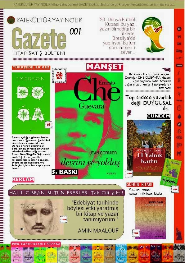 Kafekültür Yayıncılık’ın kitap satış bülteni GAZETE çıktı. Gazete ücretsiz olarak dağıtılıyor. Basılı olarak edinmek için kafekitap.com‘a üye olabilirsiniz.