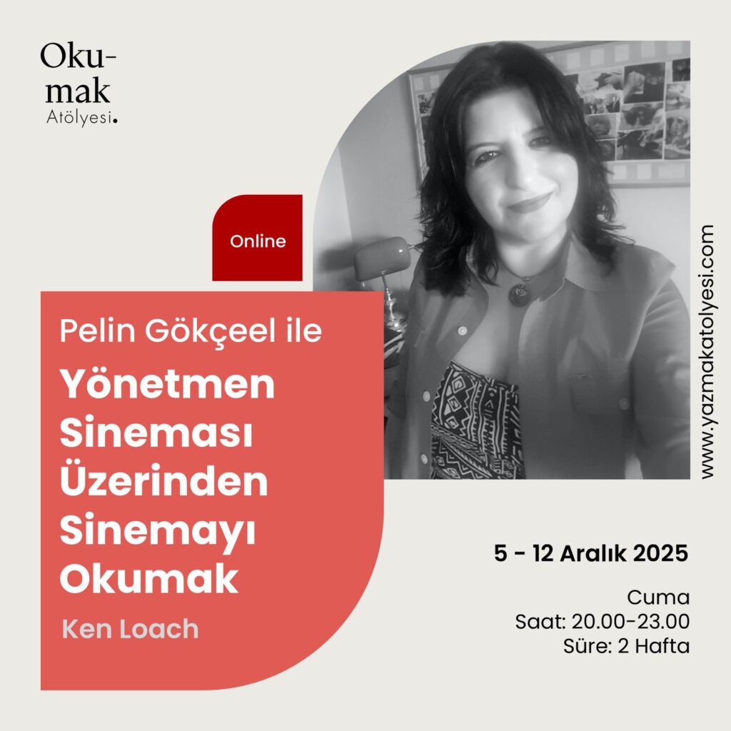 Pelin Gökçeel, Yönetmen Sineması Üzerinden Sinemayı Okumak bu ay Ken Loach ile bizlerle. Atölye programının ilk haftasında Kes (Kerkenez), Bread and Roses (Ekmek ve Güller), ikinci haftasındaI, Daniel Blake (Ben, Daniel Blake), Sorry, We Missed You (Üzgünüz, Size Ulaşamadık), Old Oak (Umudunu Kaybetme) filmleri ele alınacak. Tüm sinemaseverler davetlidir.