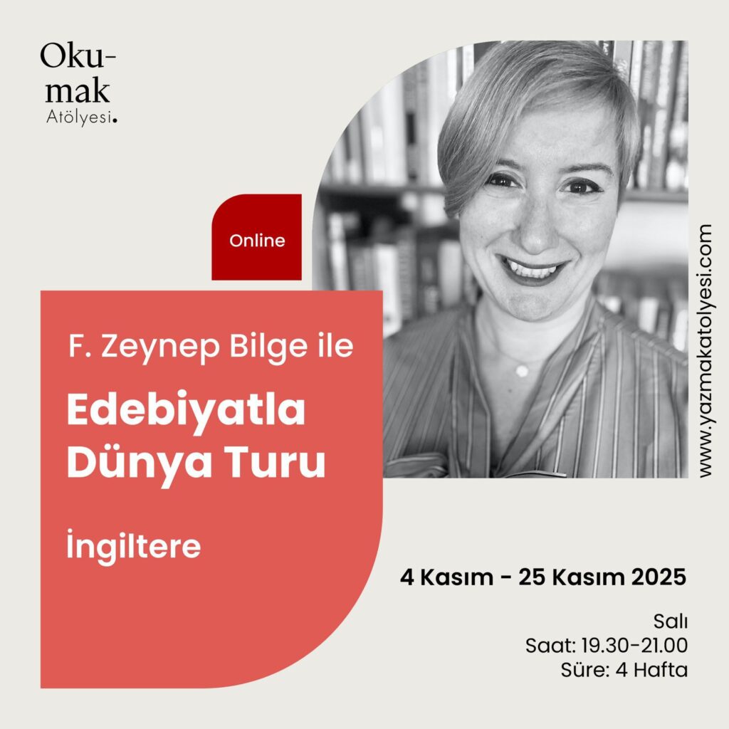 Bu yıl da “Edebiyatla Dünya Turu”nda, kelimelerin ışığında ülkeleri, kültürleri ve hikâyeleri dolaşıyoruz. İlk durağımız İngiltere; ardından Japonya, Finlandiya, Polonya, İran ve Hindistan’a uzanıyoruz. Her ülke için 4 haftalık çevrimiçi bir okuma yolculuğu sizleri bekliyor. Dilerseniz yalnızca bir ülkeye katılabilir, dilerseniz tamamına kayıt olup indirimli olarak tüm rotayı bizimle tamamlayabilirsiniz. Zoom üzerinden çevirimiçi gerçekleşecek programımızın kaydı, her oturum sonrası 1 hafta boyunca erişime açık olacak.