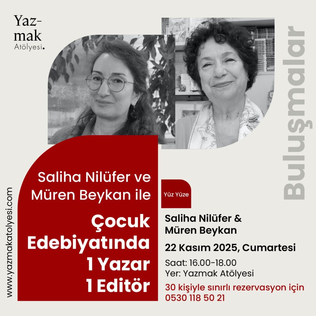 Yazmak Atölyesi’nde yepyeni bir söyleşi dizisi başlıyor. Çocuk Edebiyatında 1 Yazar 1 Editör söyleşi dizisi Günışığı Kitaplığı’nın kurucularından ve yayın yönetmeni, mimar ve arkeoloji doktoru, çağdaş çocuk ve gençlik edebiyatının nitelikli yüzlerce kitabının editörlüğünü üstlenmiş olan  Müren Beykan öncülüğünde gerçekleşecek. Söyleşi dizisinin ilkinde Beykan ile İngilizce ve İspanyolcadan çeviriler yapan, aynı zamanda kendi üretiminde dilin dönüşümünü özenle kullanan yazar ve çevirmen Saliha Nilüfer ile bir araya gelecek. Söyleşide, çocuk edebiyatında nitelik, editörlük sorumluluğu, kitapların kültürel süreklilik içindeki rolü, çocuk edebiyatında dilin inceliklerinden çevirinin yaratıcı sürece etkisine kadar uzanılacak. Edebiyatımızın değerli ismi Müren Beykan’ın deneyimi ve Nilüfer’in çok dilli duyarlılığı ile çocuk edebiyatının kültürel, estetik ve etik boyutlarına dair ufuk açıcı bir buluşma olacak. Çocuk edebiyatını seven, bu alanda üretmek ya da derinleşmek isteyen herkesi bu özel buluşmaya davet bekliyoruz.