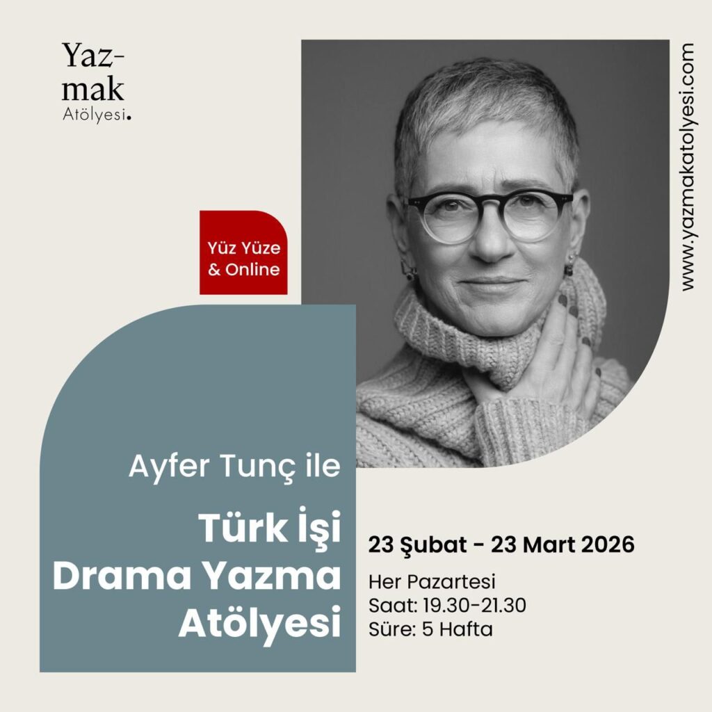Uzun zamandır merakla beklenen, kurucumuz Ayfer Tunç ile Türk İşi Drama Yazma Atölyesi ikinci dönemine başlıyor. İkinci dönemin 5 haftalık programına, senaryo, özellikle dizi senaryosu yazmış, yazan, yazmak veya öğrenmek isteyen herkes davetlidir. Ayfer Tunç ile Türk İşi Drama Yazma Atölyesi kendi senaryosunu yazma yolculuğuna çıkmak isteyenleri bekliyor.