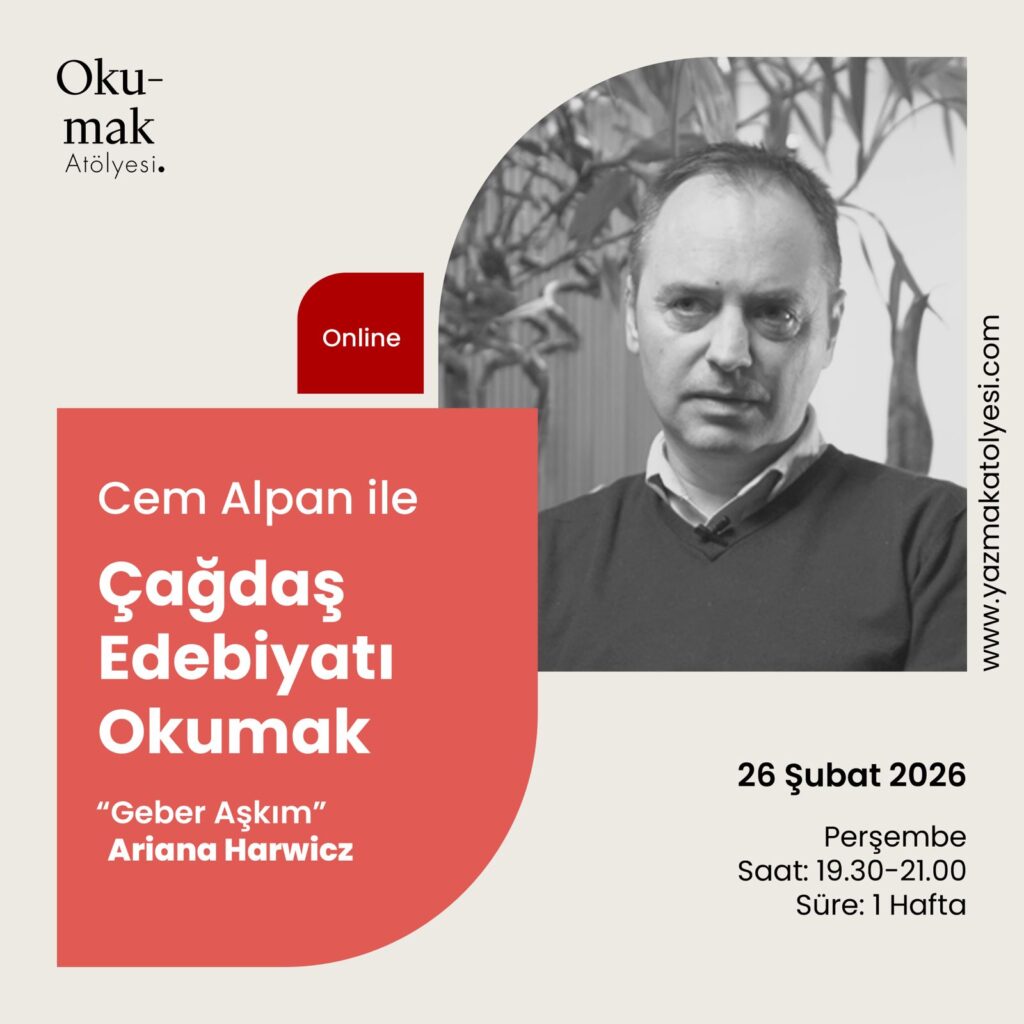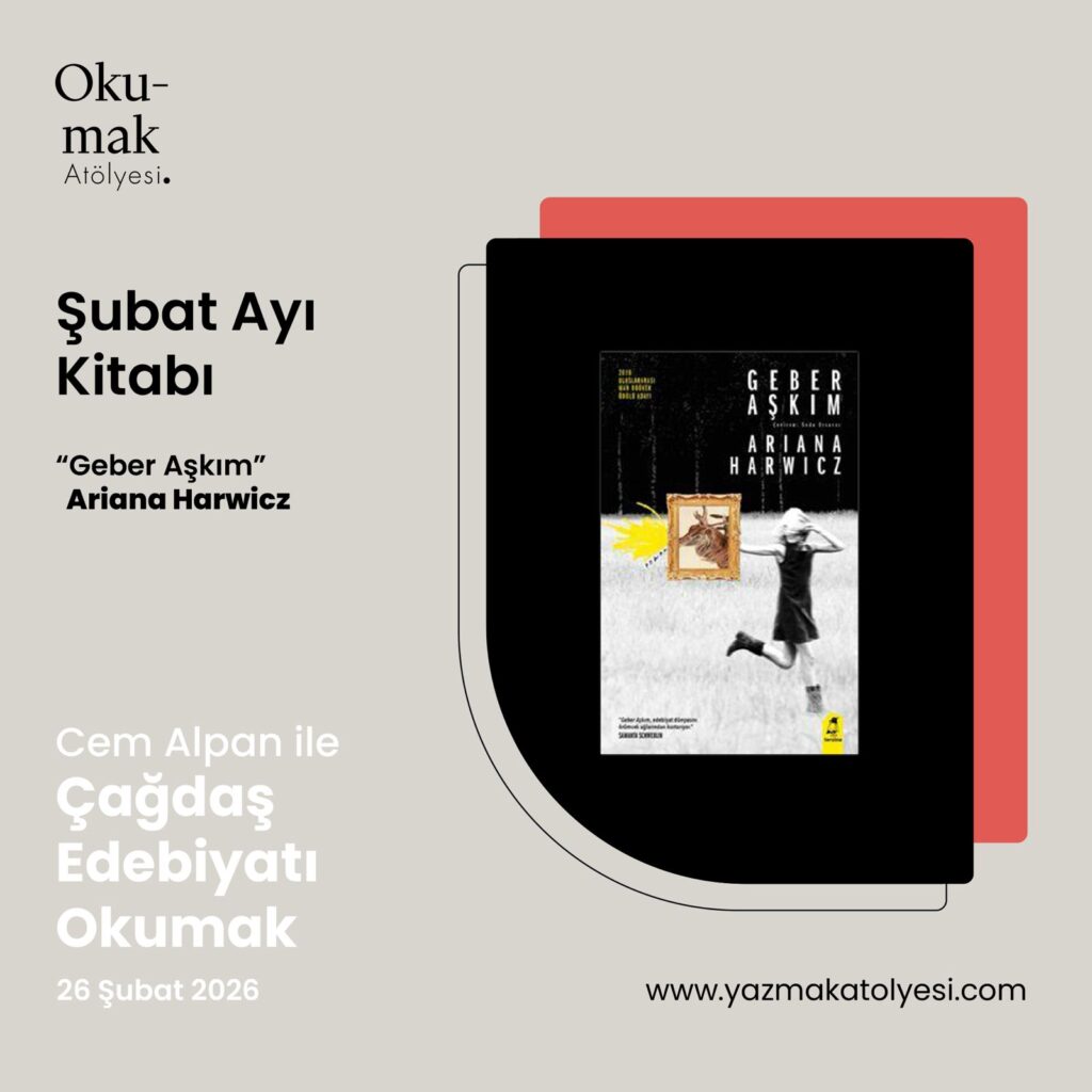 Cem Alpan ile Çağdaş Edebiyatı Okumak Atölyesi, Şubat programında son dönem Arjantin edebiyatının iz bırakan yazarlarından biri olan Ariana Harwicz’in, yeni doğum yapmış, sevgi ile öfke arasında çırpınan bir kadının şiddetli ikilemlerini konu alan “Geber Aşkım” romanı ele alınacak. Sylvia Plath, Clarice Lispector gibi kült yazarların izinden giden romanda, anlatıcı kadın aşkın sıradanlığı, aile, evlilik, annelik, kadınlık gibi kavramları en tekinsiz halleriyle irdeliyor. “Geber Aşkım”, yakın dönemde Martin Scorsese yapımcılığında, Lynne Ramsay imzasıyla “Die My Love” adıyla filme de uyarlandı. Cem Alpan ile Çağdaş Edebiyatı Okumak Atölyesi, tüm edebiyatseverleri bekliyor.