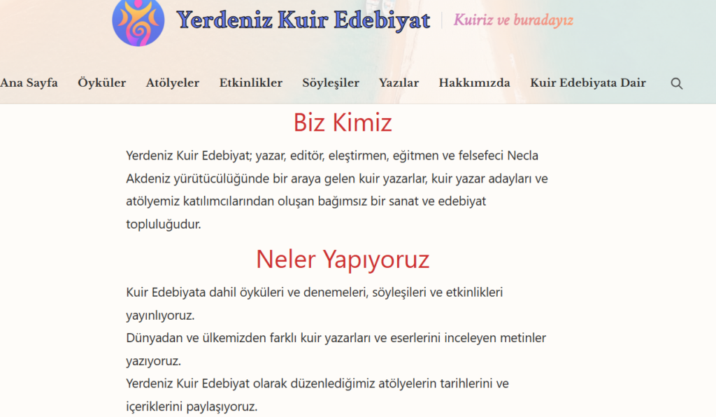 Çünkü Kuir Edebiyat, ötekilerin ve dışlanmışların, yersiz yurtsuz ve göçebelerin, görülmek tanınmak istenmeyenlerin, dili olmayıp çığlığını duyuramayanların, ikili cinsiyet sistemine sığmayanların, kimliksiz ve cinsiyetsizlerin alanıdır.