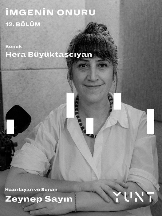 YUNT, yazın bilimci ve sanat kuramcısı Zeynep Sayın tarafından hazırlanıp sunulan “İmgenin Onuru” başlıklı podcast yayınının on ikinci bölümünde sanatçı Hera Büyüktaşcıyan’ı konuk etti. Bölüm, Büyüktaşcıyan’ın sanat pratiğinden hareketle tarihsel kırılma anlarını ele alarak tanıklığın ve yeniden inşanın olanaklarını sorguladı.