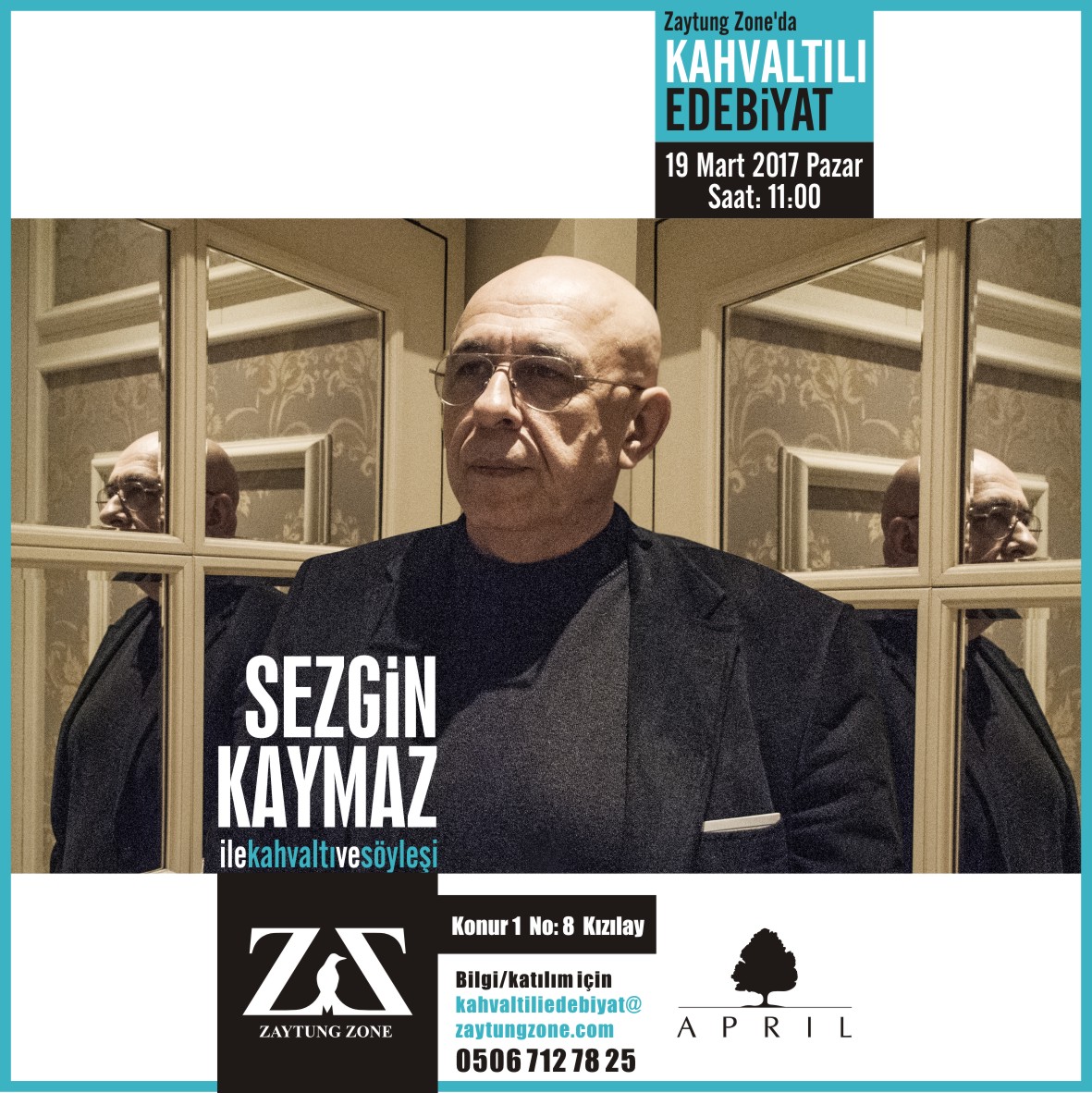 Zaytung Zone’da kahvaltılı edebiyat etkinlikleri kapsamında 19 Mart Pazar 11.00’de Sezgin Kaymaz ile söyleşilecek.