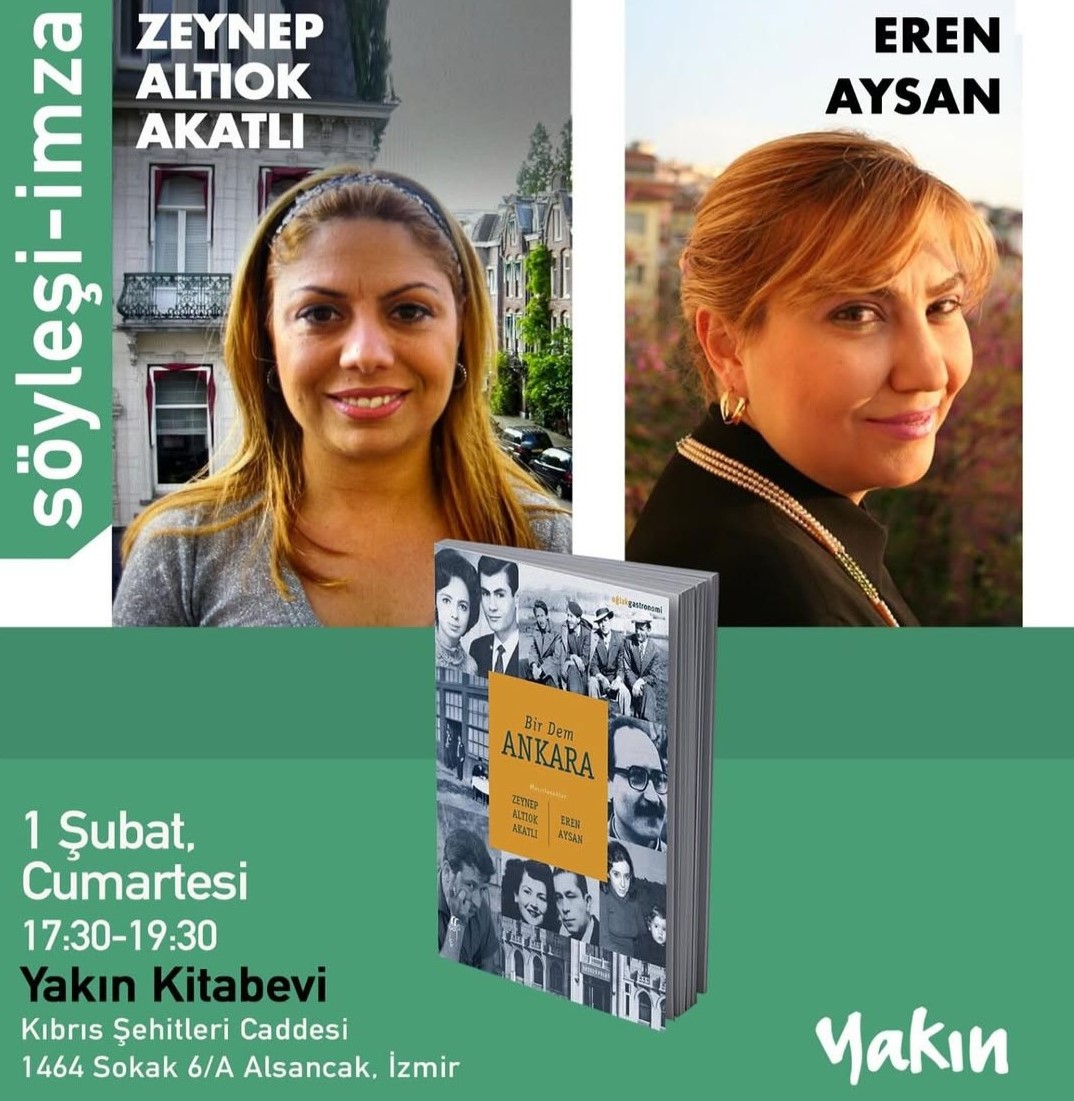 Zeynep Altıok Akatlı ve Eren Aysan okurlarıyla bir araya geliyor. İzmir Yakın Kitapevi’nde 1 Şubat’ta gerçekleşecek etkinlikte Bir Dem Ankara kitabı üzerine konuşulacak.